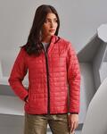 Lightweight fitted padded jacket, Honeycomb pattern with horizontal and vertical stitching, Piped edging, Zip fastening and two covered zip side pockets, Trim pocket, useful for carrying mobile devices, Elasticated cuffs and hem, High neck collar with attached hood, Access point to inner jacket for easy embellishment, Shower resistant, Rebrandable