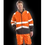 Water resistant. Windproof. Result 3 layer Softshell technology. Breathable. Soft stretch fabric. Comfortable active cut. Fashionable shaped longer back panel. Full front zip fastening. 2 zip closing side pockets, 1 zip closing chest pocket, large inside pockets and 1 inside phone pocket. Adjustable shockcord hem. Inner storm flap to neck and collar. Decorative front yoke. 50mm sewn in safety tapes incorporating 3M™Scotchlite™ reflective materials. Concealed access for Print and Embroidery. Waterproof and breathable fabric.